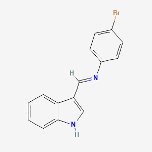 The mechanism of action of N-((1H-Indol-3-yl)methylene)-4-bromoaniline involves its interaction with specific molecular targets and pathways. For example, it has been shown to inhibit the polymerization of tubulin, a key protein involved in cell division. This inhibition can lead to cell cycle arrest and apoptosis, making the compound a potential anticancer agent . Additionally, the compound may interact with other cellular targets, such as enzymes and receptors, to exert its biological effects .