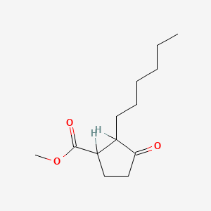 Methyl 2-hexyl-3-oxocyclopentanecarboxylate can be synthesized through various organic reactions. One common method involves the esterification of 2-hexyl-3-oxocyclopentanecarboxylic acid with methanol in the presence of an acid catalyst . The reaction typically requires refluxing the reactants for several hours to achieve a high yield.