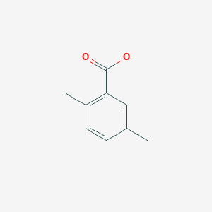2,5-Dimethylbenzoate is an aromatic ester derived from 2,5-dimethylbenzoic acid. Its synthesis involves catalytic methods and optimized reaction conditions to address challenges such as catalyst stability and byproduct formation . The ester form is structurally characterized by methyl groups at the 2- and 5-positions of the benzene ring, influencing its electronic and steric properties.