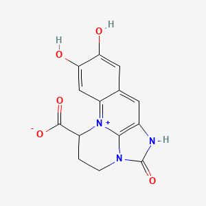 1H-2,3,5,6-Tetrahydro-5-oxo-9,10-dihydroxyimidazo(3,4,5-de)pyrimido(1,2-a)quinolinium-1-carboxylate, also known as this compound, is a useful research compound. Its molecular formula is C14H11N3O5 and its molecular weight is 301.25 g/mol. The purity is usually 95%.