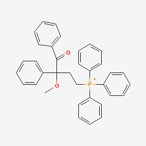 The mechanism of action of 2-Methoxy-1,2-diphenyl-4-(triphenylphosphoranyl)-1-butanone would depend on its specific interactions with molecular targets. This could involve binding to enzymes, receptors, or other biomolecules, leading to changes in biological pathways or processes. Detailed studies would be required to elucidate these mechanisms and identify the key molecular targets.