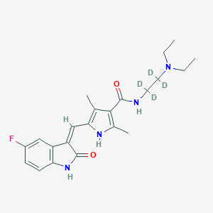 InChI=1S/C22H27FN4O2/c1-5-27(6-2)10-9-24-22(29)20-13(3)19(25-14(20)4)12-17-16-11-15(23)7-8-18(16)26-21(17)28/h7-8,11-12,25H,5-6,9-10H2,1-4H3,(H,24,29)(H,26,28)/b17-12-/i9D2,10D2 | |