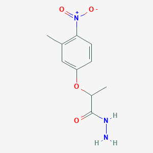 The mechanism of action of 2-(3-Methyl-4-nitrophenoxy)propanohydrazide depends on its specific application. In biological systems, it may interact with various molecular targets, such as enzymes or receptors, to exert its effects. The nitro group can undergo reduction to form reactive intermediates that can interact with cellular components, leading to biological activity. The phenoxy group may also play a role in binding to specific targets, enhancing the compound’s efficacy .