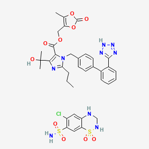 InChI=1S/C29H30N6O6.C7H8ClN3O4S2/c1-5-8-23-30-25(29(3,4)38)24(27(36)39-16-22-17(2)40-28(37)41-22)35(23)15-18-11-13-19(14-12-18)20-9-6-7-10-21(20)26-31-33-34-32-26;8-4-1-5-7(2-6(4)16(9,12)13)17(14,15)11-3-10-5/h6-7,9-14,38H,5,8,15-16H2,1-4H3,(H,31,32,33,34);1-2,10-11H,3H2,(H2,9,12,13) |