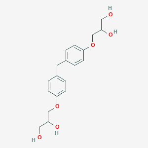 The compound features two 2,3-dihydroxypropyl ether groups attached to a bisphenol F backbone, which influences its reactivity and biological interactions.