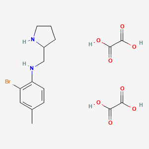 2-Bromo-4-methyl-N-(pyrrolidin-2-ylmethyl)aniline dioxalate is a synthetic compound that has garnered interest in various fields, particularly in medicinal chemistry and biological research. Its unique structure, featuring a bromine atom and a pyrrolidine moiety, suggests potential biological activities that merit investigation.