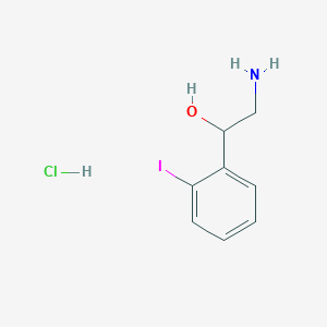 The mechanism of action of 2-Amino-1-(2-iodophenyl)ethanol hydrochloride involves its interaction with specific molecular targets. The amino group can form hydrogen bonds with biological molecules, while the iodophenyl group can participate in halogen bonding. These interactions can influence various biochemical pathways and cellular processes, leading to the compound’s observed effects.