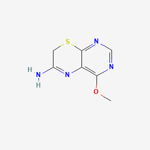The mechanism of action of 4-methoxy-7H-pyrimido[4,5-b][1,4]thiazin-6-amine involves its interaction with specific molecular targets, such as enzymes or receptors. The compound can bind to the active site of enzymes, inhibiting their activity, or interact with receptors, modulating their signaling pathways. The exact molecular targets and pathways depend on the specific application and the structure of the compound .