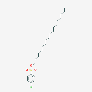 Alkyl arenesulfonates are a class of organic compounds characterized by an alkyl chain linked to an arenesulfonate group through an ester bond. These molecules find applications in various fields, including as surfactants, and as intermediates in organic synthesis. The synthesis of Octadecyl p-chlorobenzenesulfonate involves the reaction of a long-chain alcohol, octadecanol, with an aryl sulfonyl chloride, p-chlorobenzenesulfonyl chloride. This reaction is a standard method for converting alcohols into good leaving groups for subsequent nucleophilic substitution reactions. The presence of the long alkyl chain imparts significant lipophilicity to the molecule.