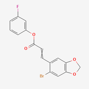 (3-Fluorophenyl) 3-(6-bromo-1,3-benzodioxol-5-yl)prop-2-enoate is an organic compound that belongs to the class of esters It is characterized by the presence of a fluorophenyl group and a bromobenzodioxole moiety connected through a propenoate linkage