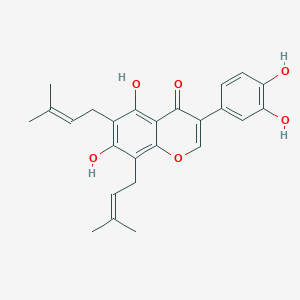 This compound is characterized by an isoflavone core substituted with two prenyl groups at the 6 and 8 positions of the A-ring. This structural feature is crucial for its biological activity.