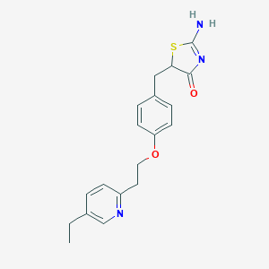 The mechanism of action of 5-{4-[2-(5-Ethyl-2-pyridyl)ethoxy]benzyl}-2-imino-4-thiazolidinone involves its interaction with specific molecular targets. In biological systems, it may interact with enzymes or receptors, leading to modulation of biochemical pathways. The exact molecular targets and pathways are still under investigation, but it is believed to exert its effects through binding to specific proteins and altering their activity .