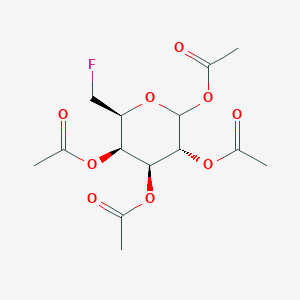 The mechanism of action of [(2S,3R,4S,5R)-4,5,6-Triacetyloxy-2-(fluoromethyl)oxan-3-yl] acetate involves its interaction with specific molecular targets. The acetoxy groups can undergo hydrolysis to release active hydroxyl groups, which can then interact with biological molecules. The fluoromethyl group may also play a role in modulating the compound’s activity by influencing its binding affinity and specificity.