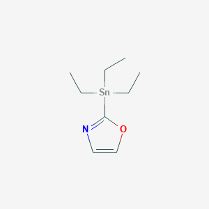This compound represents a specialized reagent that synergistically combines the functionalities of both organotin compounds and oxazole heterocycles. It is a bifunctional molecule where the triethylstannyl group at the C2 position of the oxazole ring acts as a handle for organometallic cross-coupling reactions, while the oxazole core provides the desired heterocyclic element.