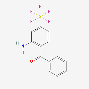 2-Amino-4-(pentafluorosulfanyl)phenyl phenyl ketone serves as a valuable building block in organic synthesis. Its unique -SF₅ group allows researchers to study the effects of fluorination on chemical reactivity and stability. This compound is often used to synthesize other fluorinated derivatives, which are crucial in developing new materials with enhanced properties.