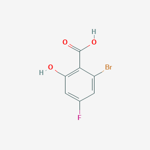 The mechanism by which 2-Bromo-4-fluoro-6-hydroxybenzoic acid exerts its effects depends on its specific application. In biological systems, the compound can interact with enzymes or receptors through hydrogen bonding, halogen bonding, and hydrophobic interactions. These interactions can modulate the activity of the target protein, leading to changes in cellular processes and pathways .