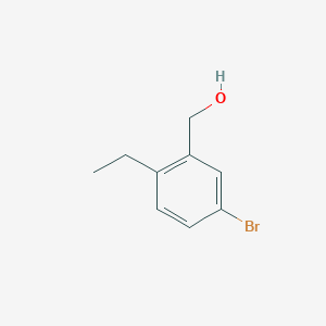 (5-Bromo-2-ethylphenyl)methanol, an organic compound with the formula C9H11BrO, is characterized by a bromine atom and an ethyl group attached to a phenyl ring, along with a hydroxymethyl group. Its molecular weight is approximately 217.09 g/mol. This compound has garnered attention for its potential biological activities, particularly in medicinal chemistry and material science.