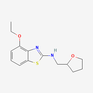 The compound exhibits multiple synonyms within chemical literature, including 4-ethoxy-N-[(oxolan-2-yl)methyl]-1,3-benzothiazol-2-amine and 4-Ethoxy-N-[(tetrahydro-2-furanyl)methyl]-2-benzothiazolamine. The DSSTox Substance ID DTXSID601181243 provides additional database cross-referencing capabilities for regulatory and toxicological applications. The standardized InChI representation InChI=1S/C14H18N2O2S/c1-2-17-11-6-3-7-12-13(11)16-14(19-12)15-9-10-5-4-8-18-10/h3,6-7,10H,2,4-5,8-9H2,1H3,(H,15,16) offers comprehensive structural encoding for computational chemistry applications.