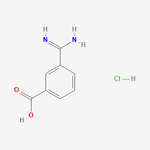 The synthesis of 3-Carbamimidoylbenzoic acid hydrochloride typically involves the reaction of 3-aminobenzoic acid with cyanamide in the presence of hydrochloric acid. The reaction proceeds through the formation of an intermediate, which is then hydrolyzed to yield the final product. The reaction conditions generally include a temperature range of 50-70°C and a reaction time of 4-6 hours.