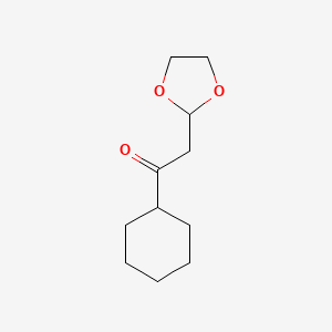 The mechanism by which 1-Cyclohexyl-2-(1,3-dioxolan-2-yl)-ethanone exerts its effects involves interactions with molecular targets such as enzymes or receptors. The dioxolane ring can act as a reactive site for binding to these targets, influencing various biochemical pathways.
