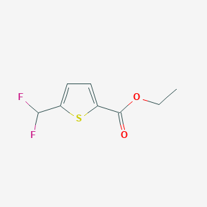 Ethyl 5-(difluoromethyl)thiophene-2-carboxylate is a fluorinated thiophene derivative characterized by a difluoromethyl (-CF₂H) substituent at the 5-position of the thiophene ring and an ethyl ester group at the 2-position. The difluoromethyl group enhances the compound's lipophilicity and metabolic stability compared to non-fluorinated analogs, making it a valuable scaffold in medicinal chemistry and agrochemical research .