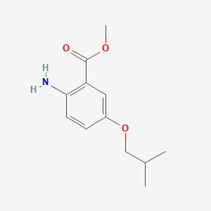 Methyl 2-amino-5-isobutoxybenzoate is a derivative of anthranilic acid, which is 2-aminobenzoic acid. molaid.com The core structure is a benzene (B151609) ring substituted with both an amine group (-NH2) and a carboxyl group (-COOH), making it an amino acid. molaid.com In the case of this compound, the carboxylic acid is esterified with a methyl group, and an isobutoxy group is attached to the benzene ring at the 5-position. This classifies it as a substituted methyl anthranilate.