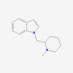 1-[(1-Methylpiperidin-2-yl)methyl]-1H-indole is a synthetic compound that has garnered attention in medicinal chemistry due to its potential biological activities. This compound, often studied in the context of synthetic cannabinoids, exhibits various pharmacological properties, making it a subject of interest for researchers exploring therapeutic applications.