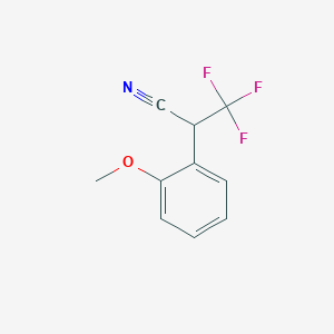 The synthesis of 3,3,3-Trifluoro-2-(2-methoxyphenyl)propanenitrile typically involves multiple steps, starting from readily available precursors. One common synthetic route includes the reaction of 2-methoxybenzaldehyde with trifluoroacetic acid and a suitable nitrile source under controlled conditions. The reaction conditions often involve the use of catalysts and specific temperature and pressure settings to ensure high yield and purity . Industrial production methods may involve optimization of these reaction conditions to scale up the process while maintaining efficiency and cost-effectiveness .