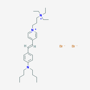 FM1-43は、N-(3-トリエチルアンモニウムプロピル)-4-(4-(ジブチルアミノ)スチリル)ピリジニウムジブロミドとしても知られており、親油性スチリル色素です。細胞膜にラベルを付け、小胞の循環を追跡する能力があるため、生物学的研究で広く使用されています。 この化合物は水性媒体では事実上蛍光を発しませんが、細胞膜の外側の葉層に挿入されると強い蛍光を発します .