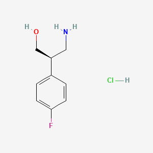 (R)-3-Amino-2-(4-fluorophenyl)-propan-1-ol, hydrochloride (CAS: 1213160-13-4) is a chiral amino alcohol derivative with the molecular formula C₉H₁₃ClFNO and a molecular weight of 205.66 g/mol . Structurally, it features a propanol backbone with an amino group at position 3, a 4-fluorophenyl substituent at position 2, and a hydrochloride salt to enhance solubility.