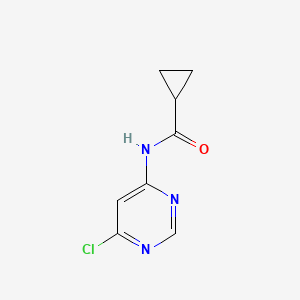 The synthesis of N-(6-chloropyrimidin-4-yl)cyclopropanecarboxamide typically involves the reaction of 6-chloropyrimidine-4-carboxylic acid with cyclopropanecarbonyl chloride in the presence of a base such as triethylamine. The reaction is carried out under anhydrous conditions to prevent hydrolysis of the acyl chloride. The product is then purified using standard techniques such as recrystallization or column chromatography .
