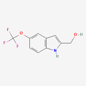 The compound (5-(Trifluoromethoxy)-1H-indol-2-yl)methanol is an indole derivative notable for its diverse biological activities. Indole derivatives have been extensively studied due to their potential applications in medicinal chemistry, particularly for their antimicrobial and anticancer properties. The incorporation of a trifluoromethoxy group enhances the compound's lipophilicity and metabolic stability, making it a candidate for further research in drug development.
