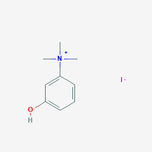 3-Hydroxy-N,N,N-trimethylbenzenaminium iodide, with the molecular formula C₉H₁₄INO and a molecular weight of approximately 279.12 g/mol, is a quaternary ammonium compound characterized by a hydroxyl-substituted benzene ring and a trimethylammonium group. This compound exhibits diverse biological activities, making it significant in various fields including medicinal chemistry, biochemistry, and pharmacology.