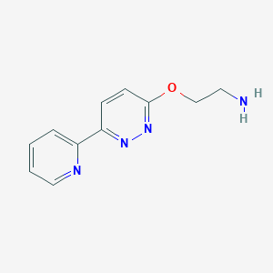 The mechanism by which {2-[(6-Pyridin-2-ylpyridazin-3-yl)oxy]ethyl}amine exerts its effects is largely dependent on its interaction with specific molecular targets. In biological systems, it can act as a ligand, binding to metal ions and modulating their activity. This interaction can influence various biochemical pathways, leading to the observed biological effects.