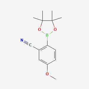 The mechanism of action of 5-Methoxy-2-(tetramethyl-1,3,2-dioxaborolan-2-yl)benzonitrile involves its role as a boronic ester in cross-coupling reactions. The boronic ester group interacts with palladium catalysts to form a palladium-boron complex, which then undergoes transmetalation with an organohalide. This process leads to the formation of a new carbon-carbon bond, followed by reductive elimination to yield the final product.