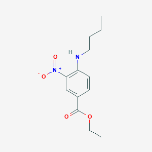 The mechanism of action of Ethyl 4-(butylamino)-3-nitrobenzoate is largely dependent on its chemical structure. The nitro group can participate in redox reactions, while the butylamino group can interact with biological targets such as enzymes or receptors. The ester group allows for the compound to be hydrolyzed in biological systems, releasing the active components.