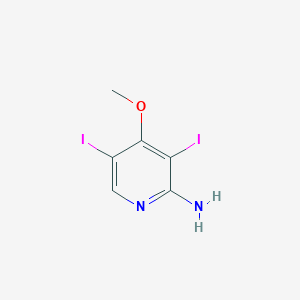 The current body of scientific literature on 3,5-Diiodo-4-methoxypyridin-2-amine is sparse, with the compound being primarily mentioned in chemical supplier catalogs as a research chemical or building block. There is a noticeable absence of in-depth studies focusing on its unique chemical properties, reactivity, or potential applications. This lack of dedicated research presents a significant opportunity for original investigations. The primary utility of this compound at present appears to be as a starting material or an intermediate in the synthesis of more complex molecules. The presence of multiple reactive sites—the amino group, the iodine atoms, and the methoxy (B1213986) group—on the pyridine (B92270) core suggests a rich and varied chemistry that is yet to be systematically explored. The high atomic weight of iodine also makes it a candidate for applications in materials science where high electron density is desirable.