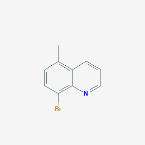 This compound, with its specific substitution pattern, presents a unique subject for focused research. The presence of a bromine atom at the 8-position and a methyl group at the 5-position on the quinoline core creates a distinct electronic and steric environment. This specific arrangement influences its reactivity and potential biological activity. For instance, in a study involving palladium-catalyzed borylation, this compound was used as a starting material to synthesize more complex molecules. mdpi.com The bromine atom provides a reactive handle for cross-coupling reactions, a fundamental tool in modern organic synthesis. The methyl group, in turn, can influence the molecule's conformation and interaction with biological macromolecules. The focused study of this compound allows for a deeper understanding of how these specific substituents modulate the properties of the quinoline scaffold, contributing to the rational design of new compounds with desired characteristics.