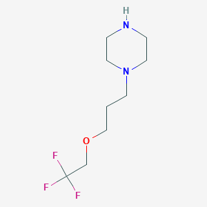 The mechanism of action of 1-[3-(2,2,2-trifluoroethoxy)propyl]piperazine involves its interaction with specific molecular targets and pathways. The trifluoroethoxy group enhances the compound’s lipophilicity, allowing it to penetrate biological membranes more effectively. This property is crucial for its potential therapeutic applications, as it can interact with intracellular targets and modulate various biochemical pathways .