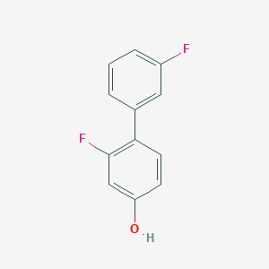 4-(3-Fluorophenyl)-3-fluorophenol is a difluorinated aromatic compound characterized by a phenol core substituted with fluorine atoms at the 3-position of the benzene ring and a 3-fluorophenyl group at the 4-position. This structural arrangement confers unique electronic and steric properties, making it a candidate for applications in medicinal chemistry, materials science, and organic synthesis. Its reactivity is influenced by the electron-withdrawing nature of fluorine atoms, which enhance acidity at the phenolic hydroxyl group and modulate intermolecular interactions .