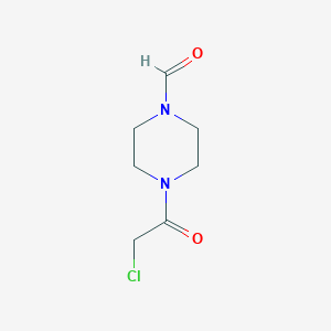 4-(2-Chloroacetyl)piperazine-1-carbaldehyde is a synthetic compound belonging to the piperazine family, characterized by a chloroacetyl and formyl group. This compound has garnered attention for its potential biological activities, particularly in medicinal chemistry, due to its structural properties that allow interactions with various biological targets.