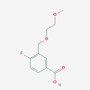 The mechanism of action of 4-Fluoro-3-[(2-methoxyethoxy)methyl]benzoic acid involves its interaction with specific molecular targets. The fluorine atom and the [(2-methoxyethoxy)methyl] group can influence the compound’s binding affinity and selectivity towards enzymes or receptors. The pathways involved may include inhibition or activation of specific biochemical processes, depending on the context of its application.