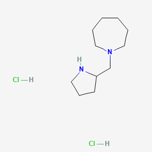 The compound is characterized by a dual-ring structure comprising a seven-membered azepane ring and a pyrrolidine moiety connected via a methylene bridge. Its molecular formula is , indicating the presence of two hydrochloride groups that enhance solubility and stability in aqueous environments. This structural configuration imparts distinct steric and electronic properties advantageous for drug design.