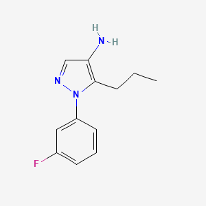 The mechanism of action of 1-(3-fluorophenyl)-5-propyl-1H-pyrazol-4-amine involves its interaction with specific molecular targets and pathways. For example, it may act as an inhibitor of certain enzymes or receptors, leading to modulation of biological processes. The exact molecular targets and pathways depend on the specific application and are often elucidated through biochemical and pharmacological studies.