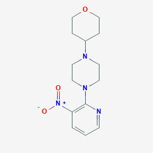 The mechanism by which 1-(3-Nitropyridin-2-yl)-4-tetrahydro-2H-pyran-4-ylpiperazine exerts its effects involves interactions with specific molecular targets and pathways. The nitro group and the piperazine moiety play crucial roles in binding to enzymes or receptors, leading to modulation of biological processes. The exact mechanism may vary depending on the specific application and the biological system involved.