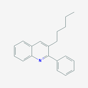 The formation of quinolines typically proceeds through a sequence of condensation, cyclization, and dehydration steps. Several classical methods, such as the Friedländer, Combes, and Doebner-von Miller reactions, provide pathways to substituted quinolines. The synthesis of 3-Pentyl-2-phenylquinoline is most directly achieved via the Friedländer synthesis, which involves the reaction of a 2-aminoaryl ketone with a compound containing an α-methylene group. In this case, 2-aminobenzophenone (B122507) would react with 2-heptanone.