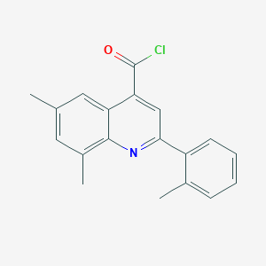 The mechanism of action of 6,8-Dimethyl-2-(2-methylphenyl)quinoline-4-carbonyl chloride involves its interaction with specific molecular targets. The carbonyl chloride group can react with nucleophilic sites on proteins or other biomolecules, leading to the formation of covalent bonds . This interaction can alter the function of the target molecule and is useful in studying protein modifications and interactions .