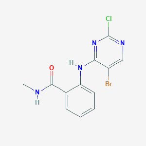 The mechanism of action of 2-(5-Bromo-2-chloro-pyrimidin-4-ylamino)-N-methyl-benzamide involves its interaction with specific molecular targets, such as enzymes or receptors, in biological systems. The presence of bromine and chlorine atoms on the pyrimidine ring can enhance its binding affinity to these targets, leading to the modulation of various biochemical pathways. The exact molecular targets and pathways involved depend on the specific biological activity being studied.