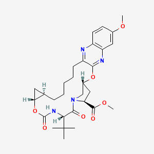 CC(C)(C)[C@H]1C(=O)N2C[C@@H](C[C@H]2C(=O)OC)OC3=NC4=C(C=CC(=C4)OC)N=C3CCCCC[C@@H]5C[C@H]5OC(=O)N1 | |
