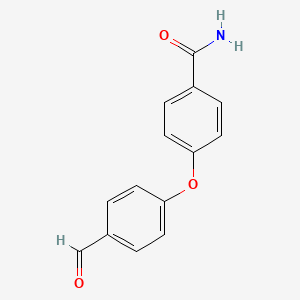 4-(4-Formyl-phenoxy)-benzamide serves as a significant building block in the synthesis of a variety of organic molecules. Its utility is particularly highlighted in the field of medicinal chemistry, where the phenoxy-benzamide framework is a recognized structural motif in biologically active compounds. Research has demonstrated that derivatives of this compound are crucial intermediates in creating molecules with therapeutic potential.
